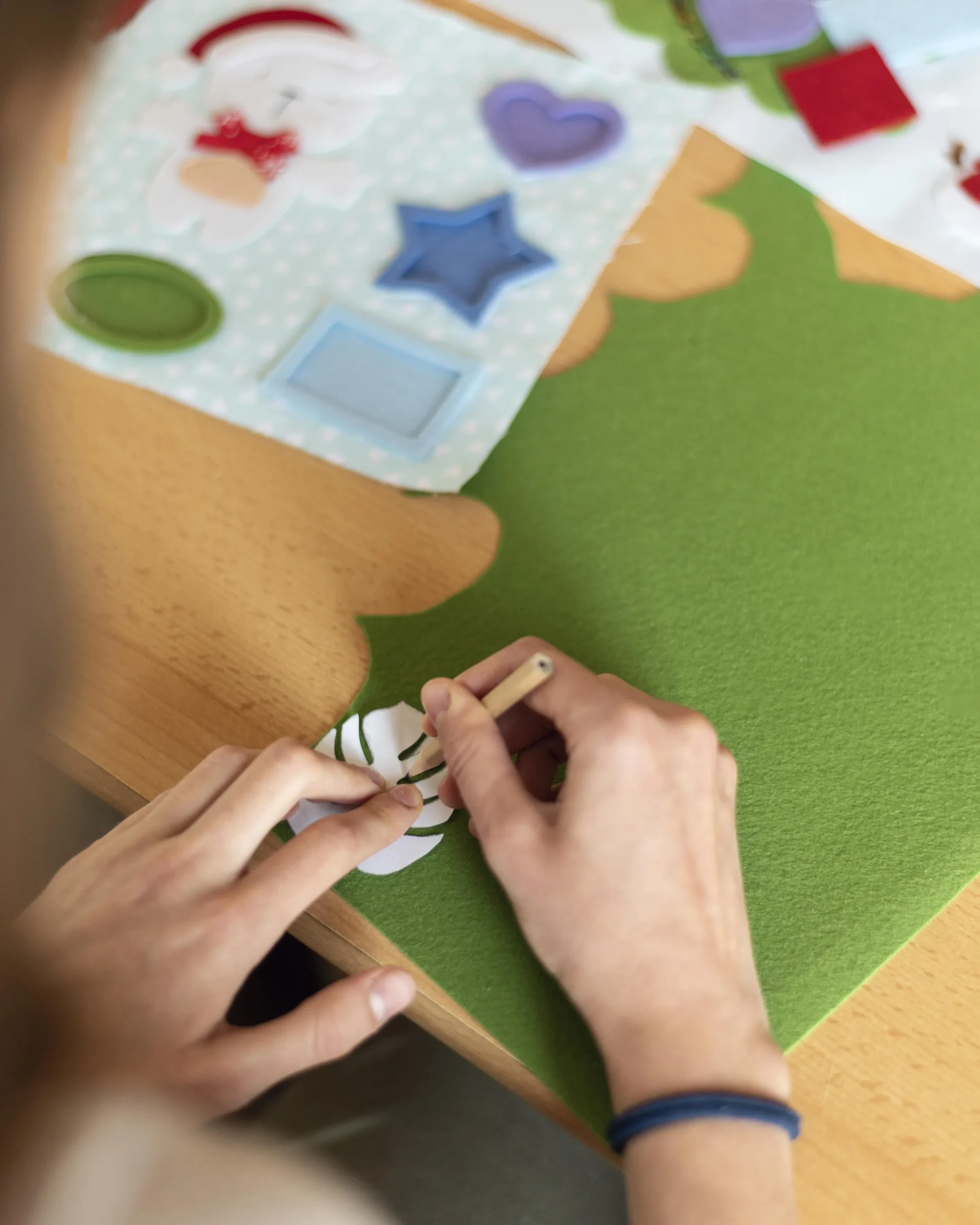 Hobby felt is a colorful and soft material ranging from 1 mm to 3 mm in thickness, specifically produced for handicrafts and decorative purposes. Its most significant differences are its extensive color palette and ease of cutting.