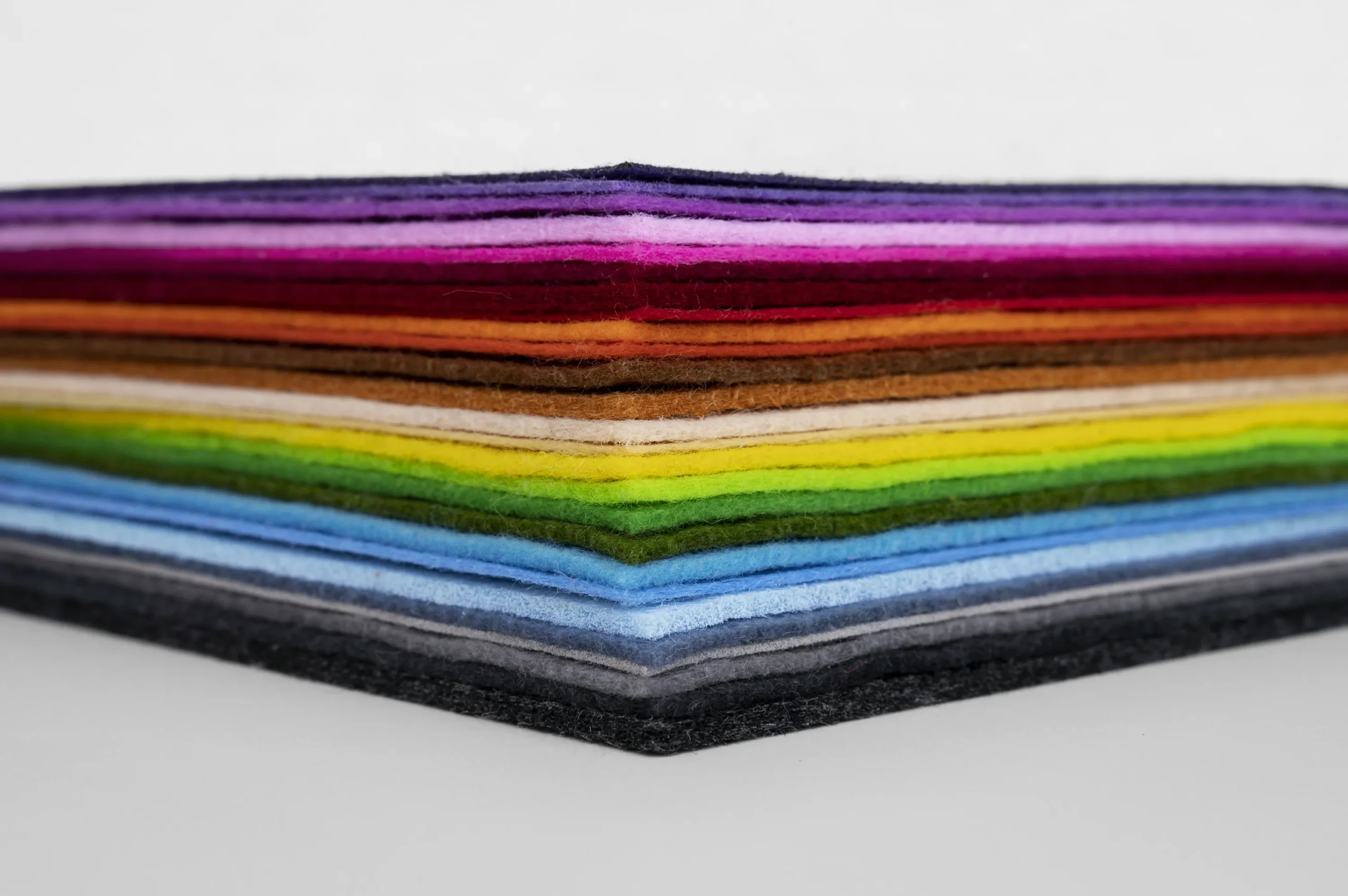 Stationery felt is a colorful, soft, and easy-to-cut type of felt used in school and hobby work. It is frequently used in school projects, handicrafts, model making, and decorative works.