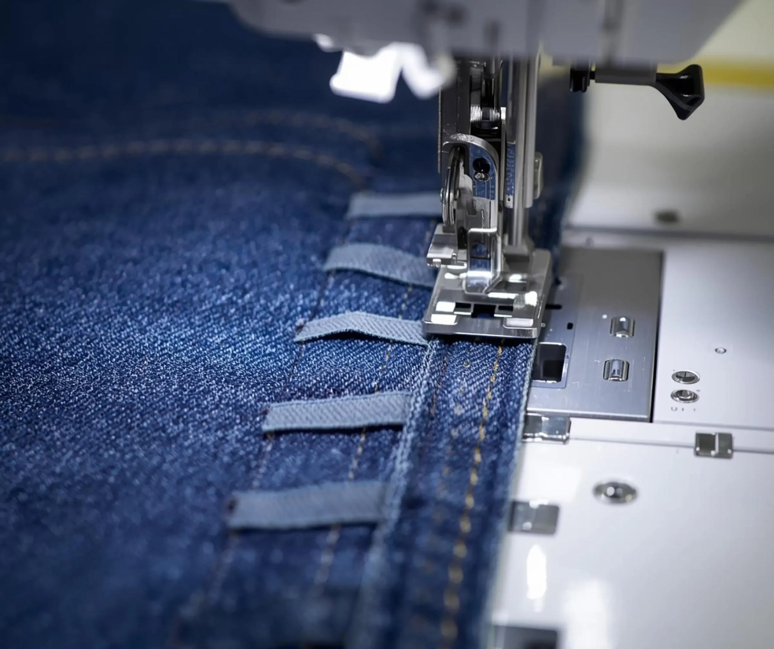 В производстве денима строчка punteriz имеет решающее значение как для прочности, так и для эстетики. Плотные ткани, зоны с высокой нагрузкой и видимые швы требуют дополнительной поддержки. Без усиления джинсовые строчки со временем могут провисать, сминаться или деформироваться.